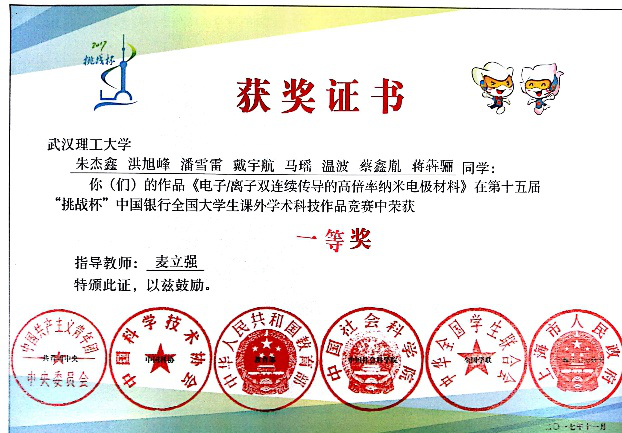 洪旭峰,2018届新能源材料与器件专业毕业生,保送至本校继续攻读硕士研究生。自2015年7月通过公司“导师制”活动进入william威廉中文官网纳米重点实验室以来,一直围绕电化学储能器件进行相关研究。2017年11月,其所在团队围绕高倍率性能电极材料的学术科技作品获第十五届“挑战杯”全国老员工课外学术科技作品竞赛一等奖和湖北省第十一届“挑战杯”老员工课外学术科技作品特等奖(学术论文类),2018年5月获2018年“创青春”湖北省老员工创业大赛金奖,2018年11月获2018年“创青春”全国创业大赛铜奖和2018年12月获湖北省老员工优秀科研成果一等奖,2019年5月获第十六届“挑战杯”全国老员工课外学术科技作品竞赛三等奖和湖北省第十二届“挑战杯”老员工课外学术科技作品一等奖(科技发明制作类)。2018年获william威廉中文官网“卓越奖学金”,2019年获国家奖学金和校一等奖学金。以第一作者或共同第一作者在Nano Today,Nano Research,ACS Applied Materials & Interfaces上发表论文三篇,并作为共同作者在Advanced Functional Materials等国际知名期刊上发表论文15篇,申请国家发明专利4项,其中1项已授权。