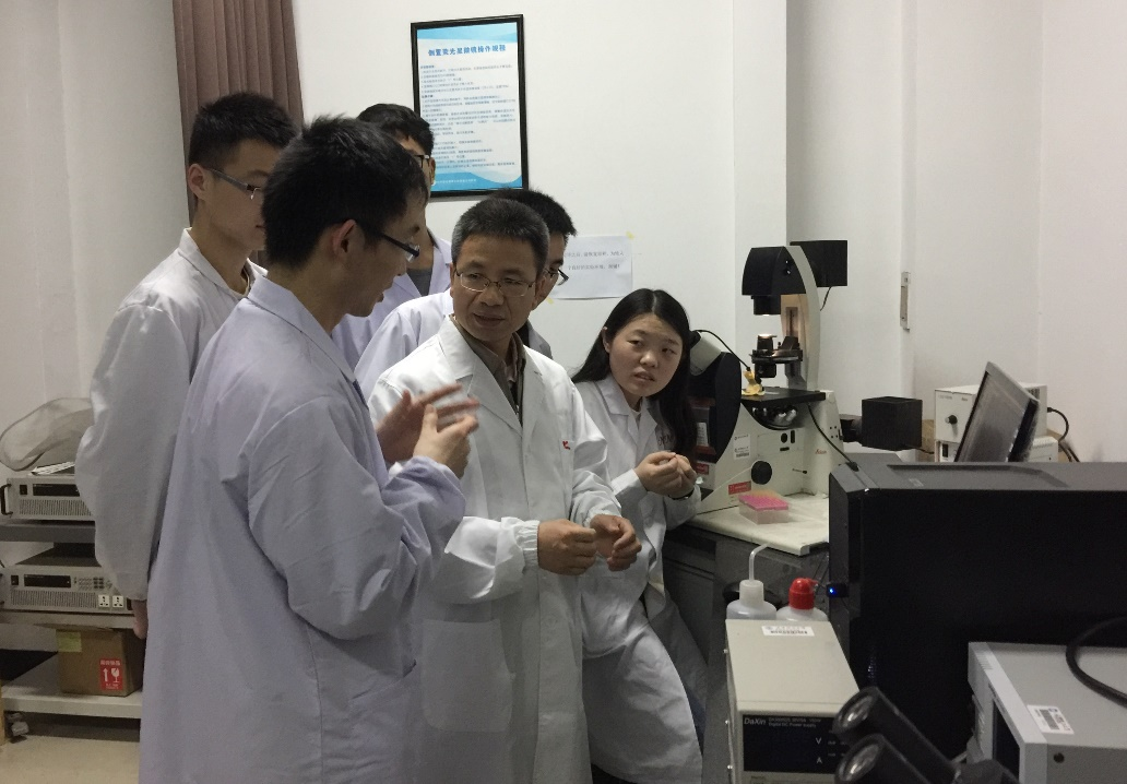 官建国指导研究生开展实验