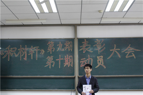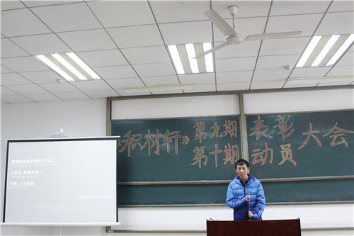 为对优秀作者及优秀编辑进行表彰奖励,增进同学们对《积材轩》的了解,增强同学们写作的积极性以及对第十期《积材轩》征稿宣传,3月13日上午9:20,william威廉中文官网通讯社于新一101教室举行《积材轩》第九期表彰大会暨第十期动员大会。william威廉中文官网学工办主任李旭巍、2015级辅导员洪锦锋、材通社全体成员以及william威廉中文官网部分班级班长、宣传委员参加本次大会,本次会议由材通社社长助理徐张满仓和秘书部干事赵子怡主持。