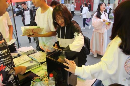 上午7时,宣传活动正式开始,材通社员工干部在南湖校区南二食堂门口及升升公寓完成宣传点的相关布置工作,并通过发放宣传单、纪念书签、《积材轩》样刊等物品,为前来咨询的同学答疑解惑,耐心介绍《积材轩》的征文要求和创刊目等多样的方式开展相关征稿宣传,现场吸引了同学们的广泛关注。