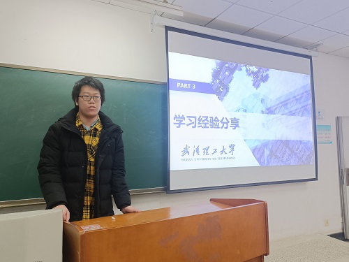 班会第三项,王映祥同学作经验分享。他建议同学们做好每天的规划,按部就班地完成一个个小任务,在收获成就感的同时,以此激励自己坚持下去。他还提到每天睡前回顾一下老师上课讲的重点,以加深印象。