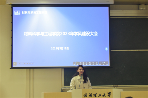 会议第三项,材科2003班钟欣玮同学作为优秀员工代表进行发言。她从学习安排,员工工作,课余时光,班级建设四个方面进行讲述。她指出,我们首先要明白学风建设的目的,要学会将学风建设融入我们的学习和日常生活中。钟同学也建议大家在平时就做好学习规划,学会提前安排和合理分配时间,做到科学学习。最后,她号召大家要互帮互助,共同努力,营造良好的学习风气,在更好的学风里不断完善自己。
