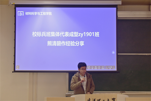 会议第四项,成型zy1901班熊清碧同学作为校标兵班集体代表进行发言。他从校标兵班集体评选指标出发,逐一解析每一个指标的重要性。他表示,班级的优秀可以帮助每一位同学成为更加优秀的自己。熊同学分享自己的心得体会谈到,班委们应该担负起自己的责任,营造良好的班风、学风,成立学习小组,主动去帮扶学习困难的同学。