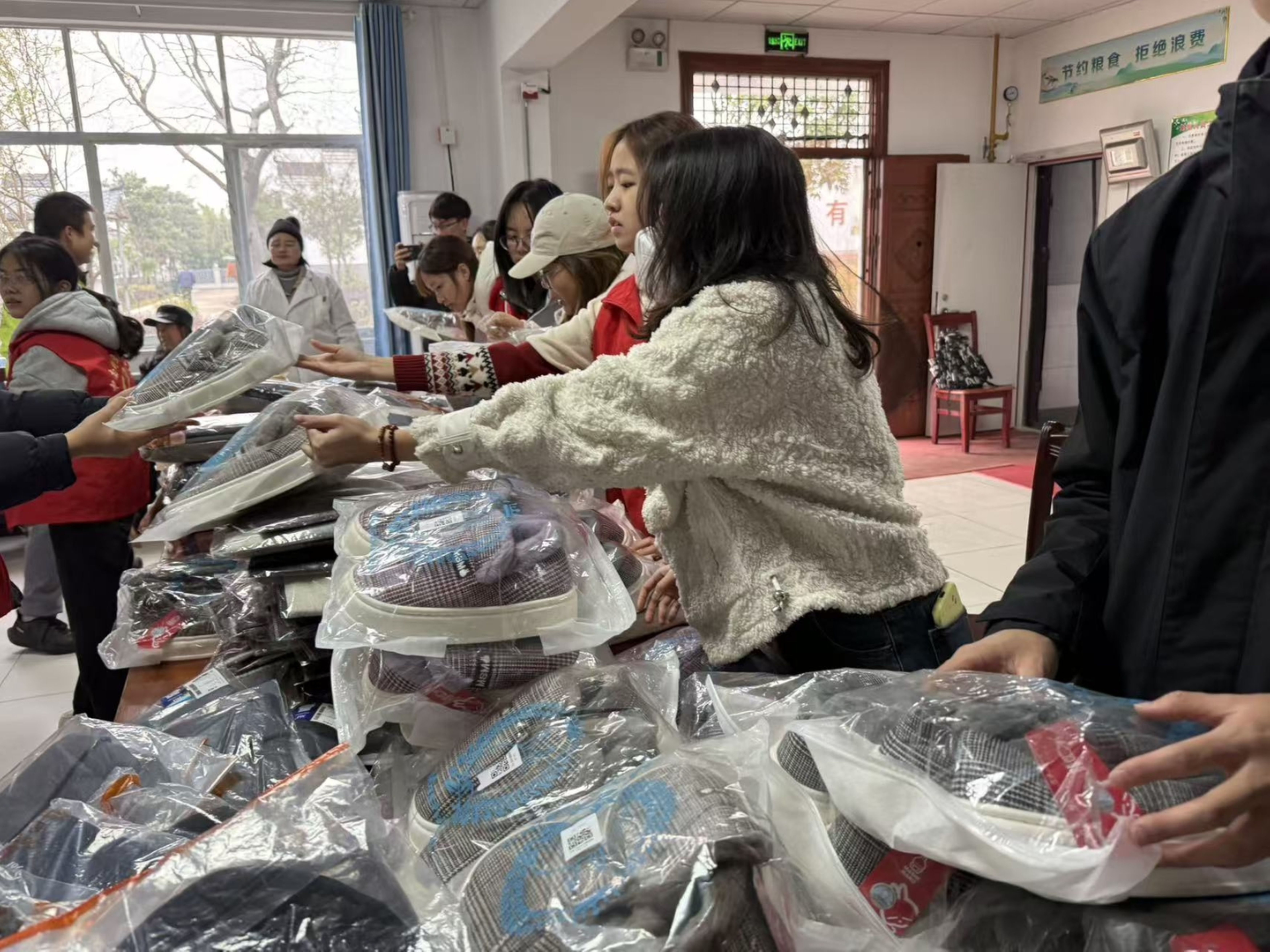 物资分发现场暖意融融,欢声笑语驱散了寒意。志愿者们分组行动,分工协作:有的蹲下身仔细比对尺码,为老人试穿棉鞋;有的轻轻为高龄老人拉平衣角、系好鞋带;有的搀扶着行动不便的老人,缓步走回房间试穿新衣。“这羽绒服又轻又暖和,棉鞋踩在脚下不硌脚,裹着你们的心意,这个冬天不冷啦!” 一位头发花白的老爷爷穿着新衣物,紧紧拉着志愿者的手,脸上满是欣慰的笑容。简单的互动、贴心的关怀,让陌生感瞬间消融,养老院的庭院里、走廊上,处处涌动着老少相依的温情,老人们的笑容如同冬日里的暖阳,温暖了在场每个人的心田。