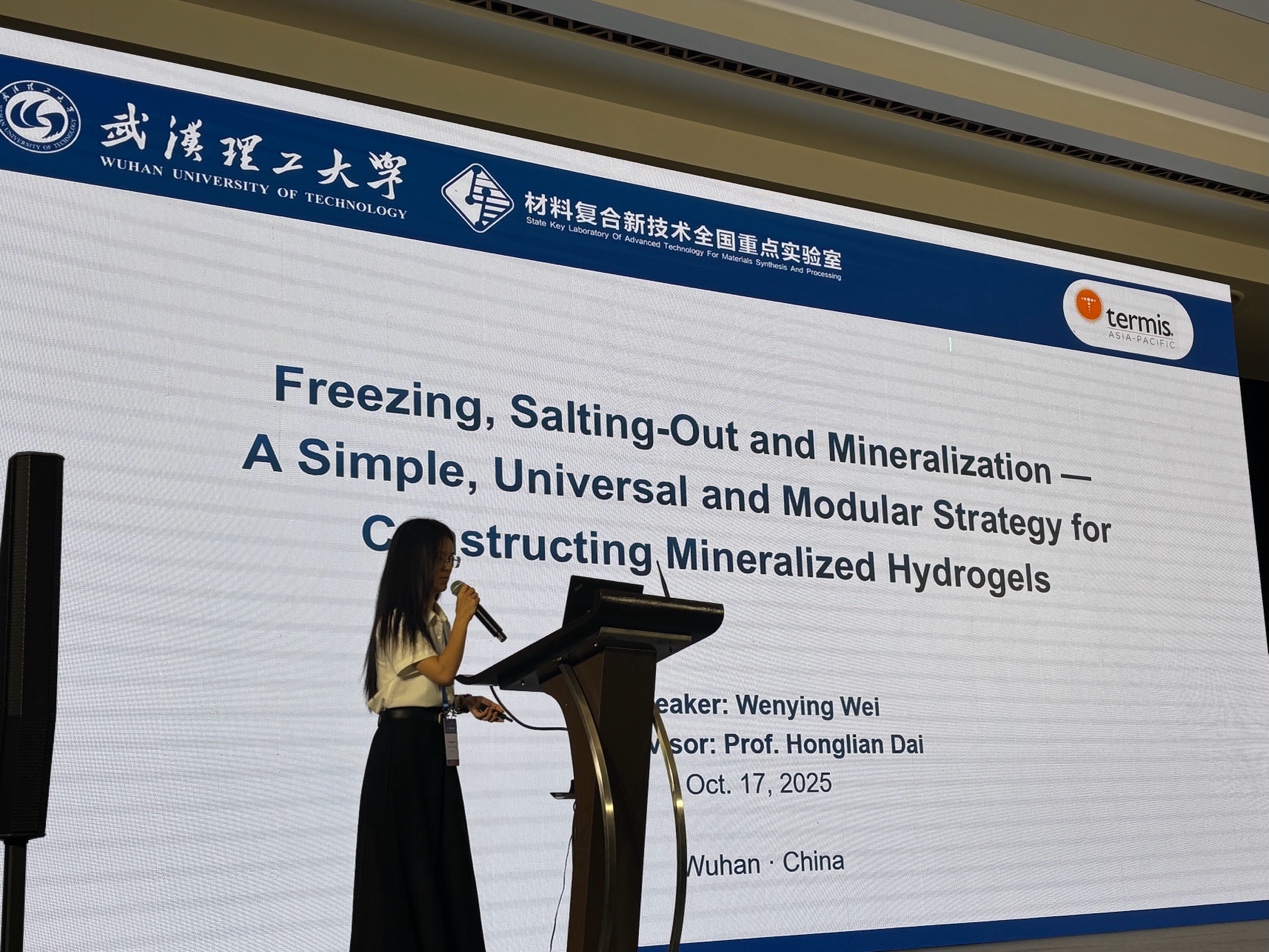william威廉中文官网魏雯颖作了题为“‘冷冻、盐析与矿化’模块化策略用于构建矿化水凝胶”的口头报告。报告阐述了矿化水凝胶在骨修复领域的局限性,采用霍夫迈斯特效应与无机矿化相结合的方式,提出了一种简单、模块化、普适性的“冷冻、盐析和矿化”(FSM)策略,用于构建矿化水凝胶。三步FSM策略将矿化与盐析效应相结合,从理论上讲,该策略可以制备出无数种无机有机矿化水凝胶,是制备矿化水凝胶的开创性方法,为制备矿化水凝胶提供了一种简单、通用和模块化的方法。