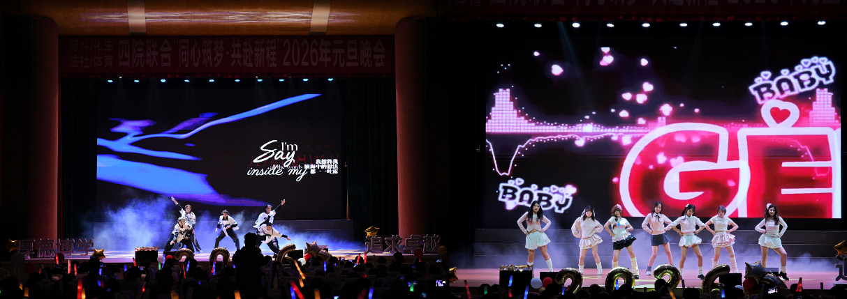 辞旧迎新,逐梦前行。2026年的钟声即将敲响,这场元旦晚会不仅是对过往一年的总结与告别,更是对新征程的期许与展望。四院学子将带着晚会中收获的感动与力量,以龙马精神奔赴新的旅程,在学术研究、校园生活与个人成长的道路上同心筑梦,共赴山海,用青春与汗水书写属于自己的华彩篇章。
