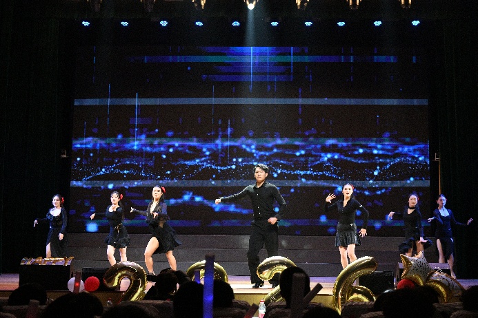 体育公司《体育舞蹈串烧》融合拉丁与摩登舞姿,优雅旋转尽显力与美;化生与法社两院联袂的《Rich man+Spaghetti》以现代律动赢得满堂喝彩。